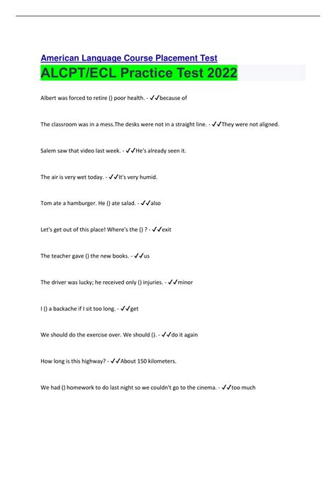 Free PDF AMERICAN LANGUAGE COURSE ALCPT PLACEMENT TEST Doc ManyBooks